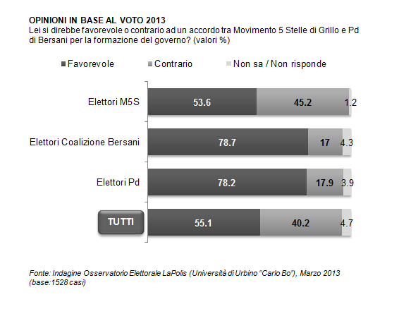 Quello che vi propongo però è più di un sondaggio: è la certificazione di quello che si sente ripetere in tutta Italia, nel centrosinistra e non solo, tra gli elettori del Pd e quelli del M5S.